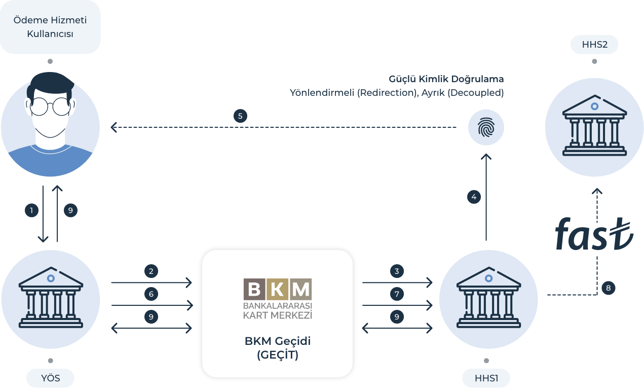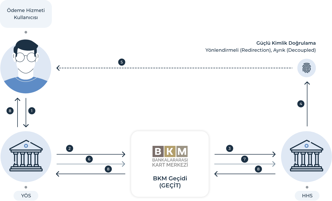 - YÖS, BKM Geçidi (GEÇİT) üzerinden talep mesajını iletir.